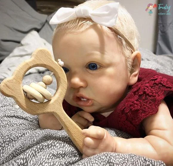 What better to inspire love and warmth than a lovely realistic doll? That's exactly what Saskia is for! This cute and lovely baby looks like she is babbling away with her mouth open; she has beautiful blue grey eyes and is full of curiosity about the world. Her skin is delicate and textured, and her face is blushing, as if her body is actually warm. Saskia's skin texture is hand-painted, and her hair and eyelashes are woven from high-quality hair. You can take her on a picnic, read her bedtime stories, or hold her as you go to sleep. Saskia, she's so pure and sweet.